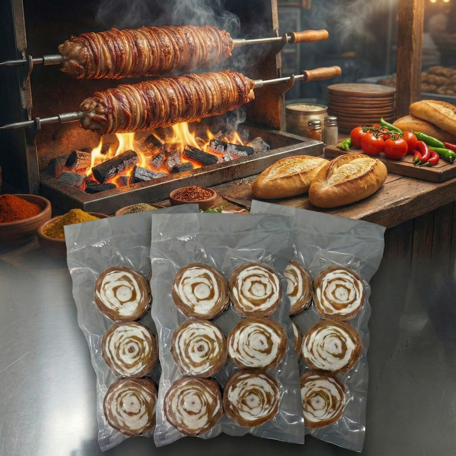 1450g - 1550g ArasıGeleneksel İzmir usulü sarımın profesyonel mutfaktaki yorumu. Baton formunda sunulan bu ürün, kokoreci kendi zevkine göre dilimlemek isteyen gurmeler için özel olarak hazırlanmıştır. İri kıyım dokusuyla dışı çıtır, içi sulu bir lezzet deneyimi sunar; ustalığı sofranıza taşır.